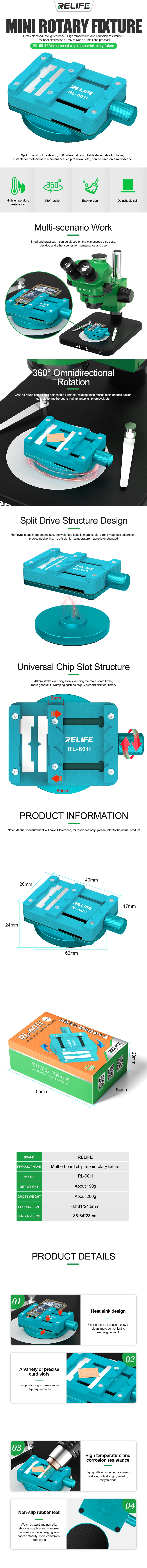 Ya sea que estés realizando trabajos de soldadura, desoldadura o reemplazo de componentes, este accesorio se adapta a diferentes técnicas de reparación. Su diseño versátil lo convierte en una herramienta esencial para una variedad de tareas de reparación en dispositivos móviles.