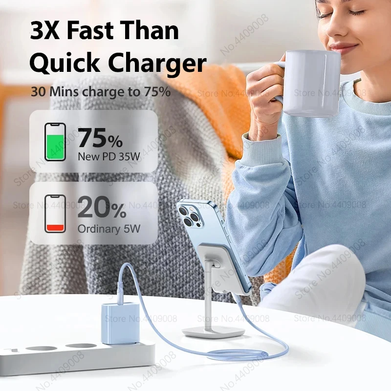 El cargador de carga rápida 35W viene Equipado con un puerto USB C y un cable Lightning, este cargador es compatible con una amplia variedad de dispositivos, como iPhones, iPads, teléfonos Android, tabletas y más. Su versatilidad lo convierte en una herramienta imprescindible para cualquier hogar u oficina.