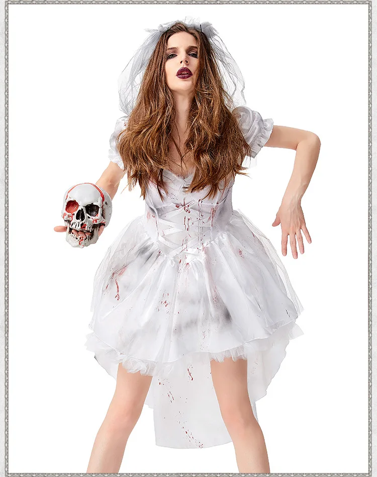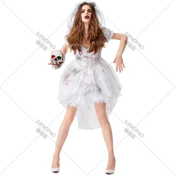 to mujer Halloween carnaval fantasma vampiro juego de rol uniforme, fantasma blanco novia sangre rop
