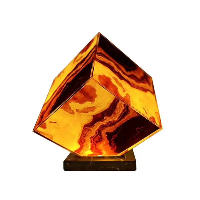 Además de su belleza estética, la lámpara de cristal de ágata también cumple con su función práctica como fuente de luz. La calidad del cristal asegura una iluminación suave y acogedora, perfecta para crear un ambiente relajante en cualquier espacio. Ya sea como una lámpara de mesa, lámpara de noche o lámpara decorativa, esta pieza de arte funcional se convertirá en el centro de atención donde quiera que se coloque.