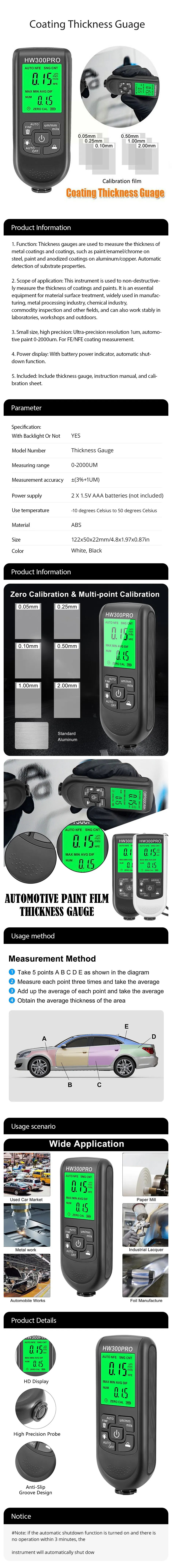 - Fácil de Usar: La interfaz intuitiva y las instrucciones claras hacen que el medidor de espesor sea accesible incluso para aquellos que no son expertos en el campo automotriz.