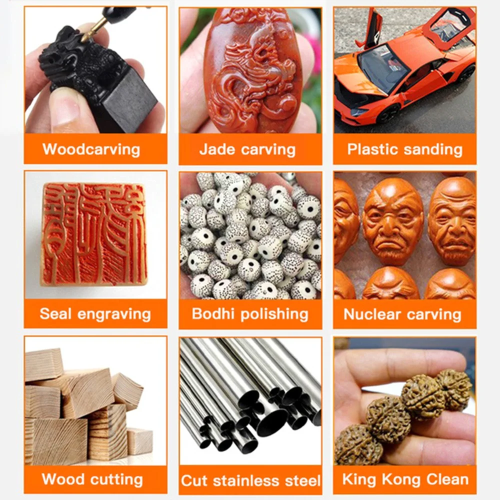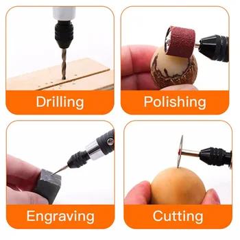 Nuestro mini taladro no solo es inalámbrico, sino también increíblemente versátil. Con una variedad de accesorios y puntas intercambiables, puedes usarlo para esculpir detalles intrincados, diseñar patrones precisos, pulir superficies y realizar perforaciones con facilidad. Desde proyectos de joyería hasta trabajos de bricolaje en el hogar, este mini taladro se adapta a una amplia gama de aplicaciones.