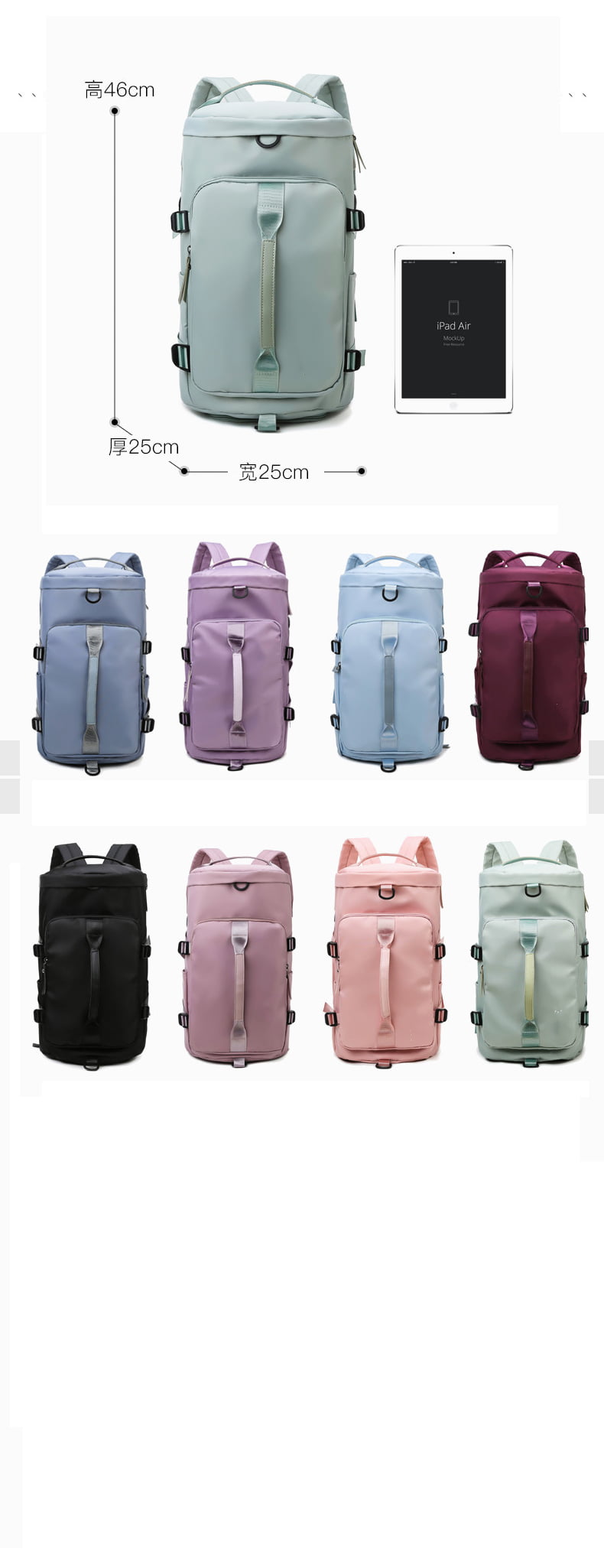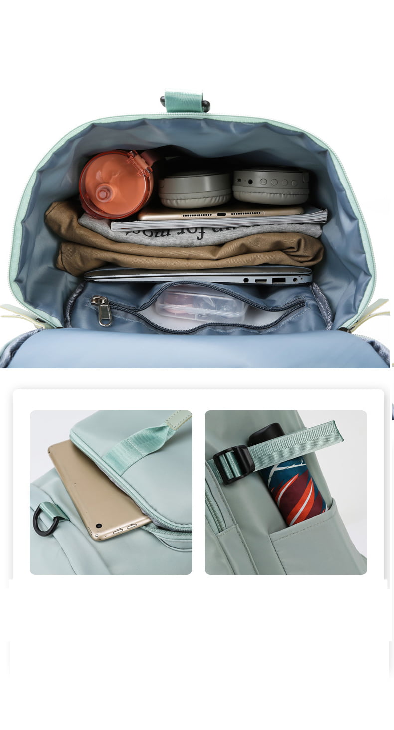 La mochila de viaje para mujer es compacta y liviana, lo que facilita su transporte. Puedes llevarla cómodamente en la espalda o agarrarla del asa superior cuando sea necesario.