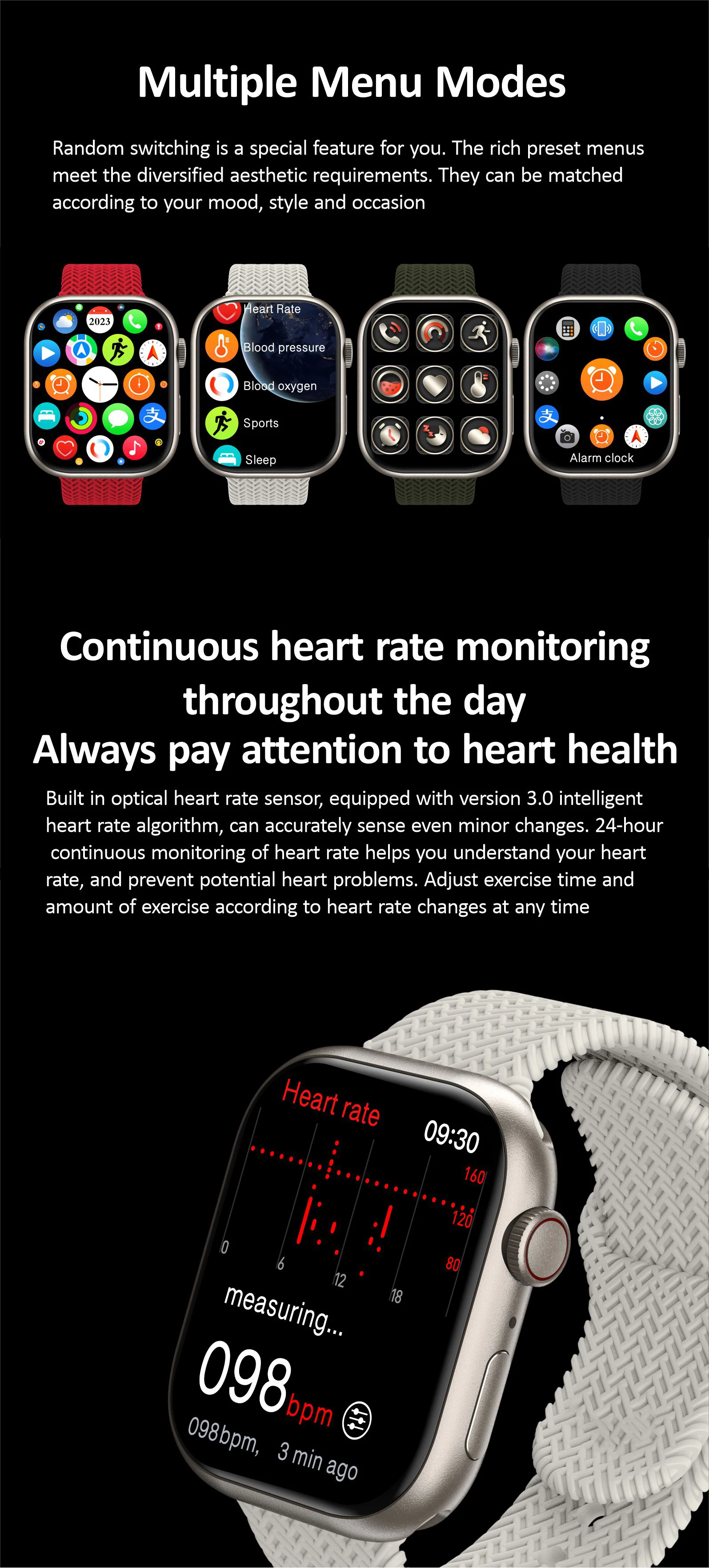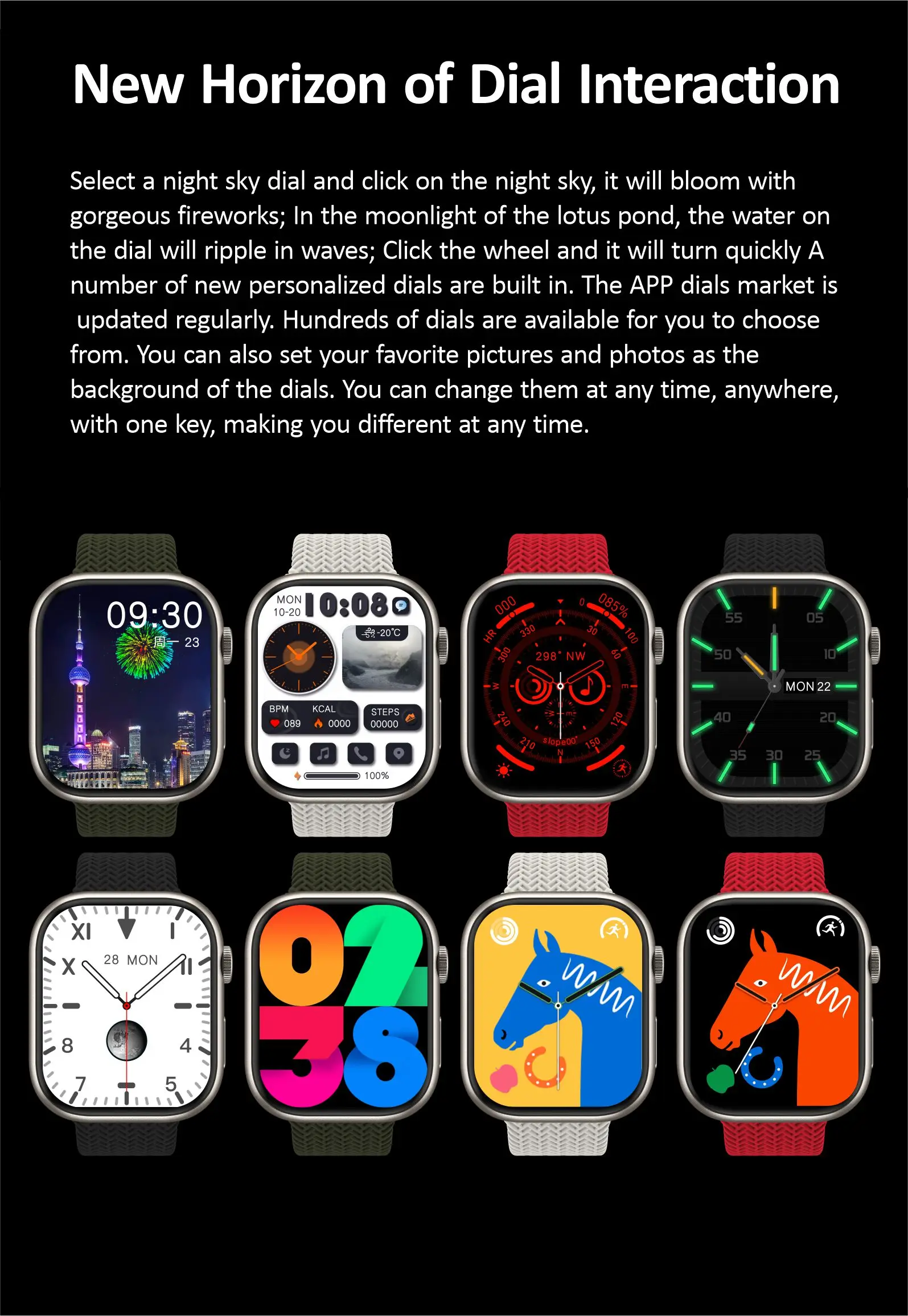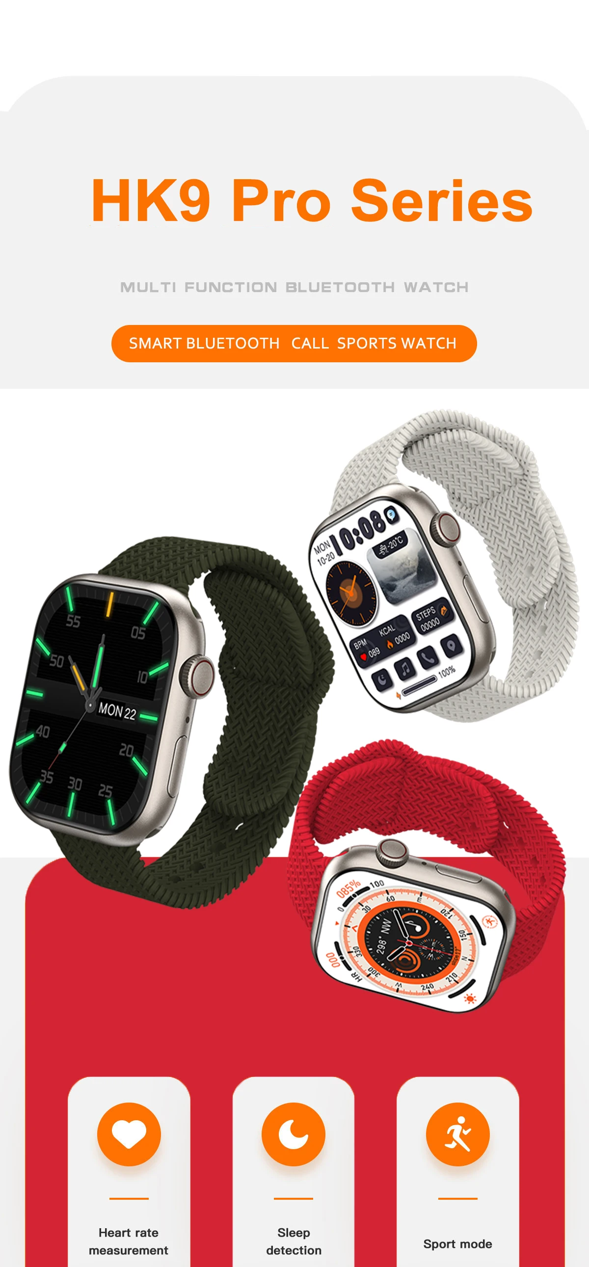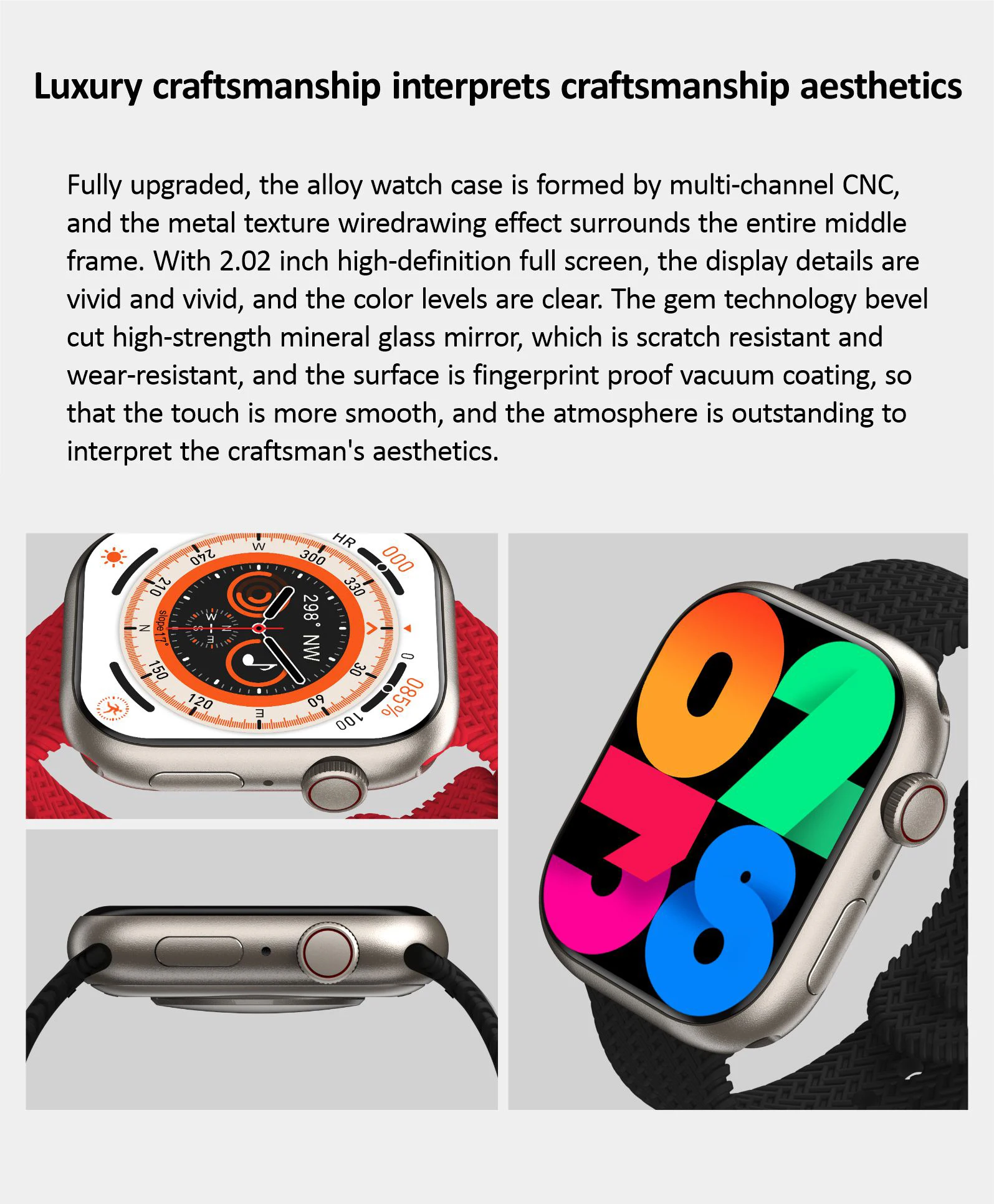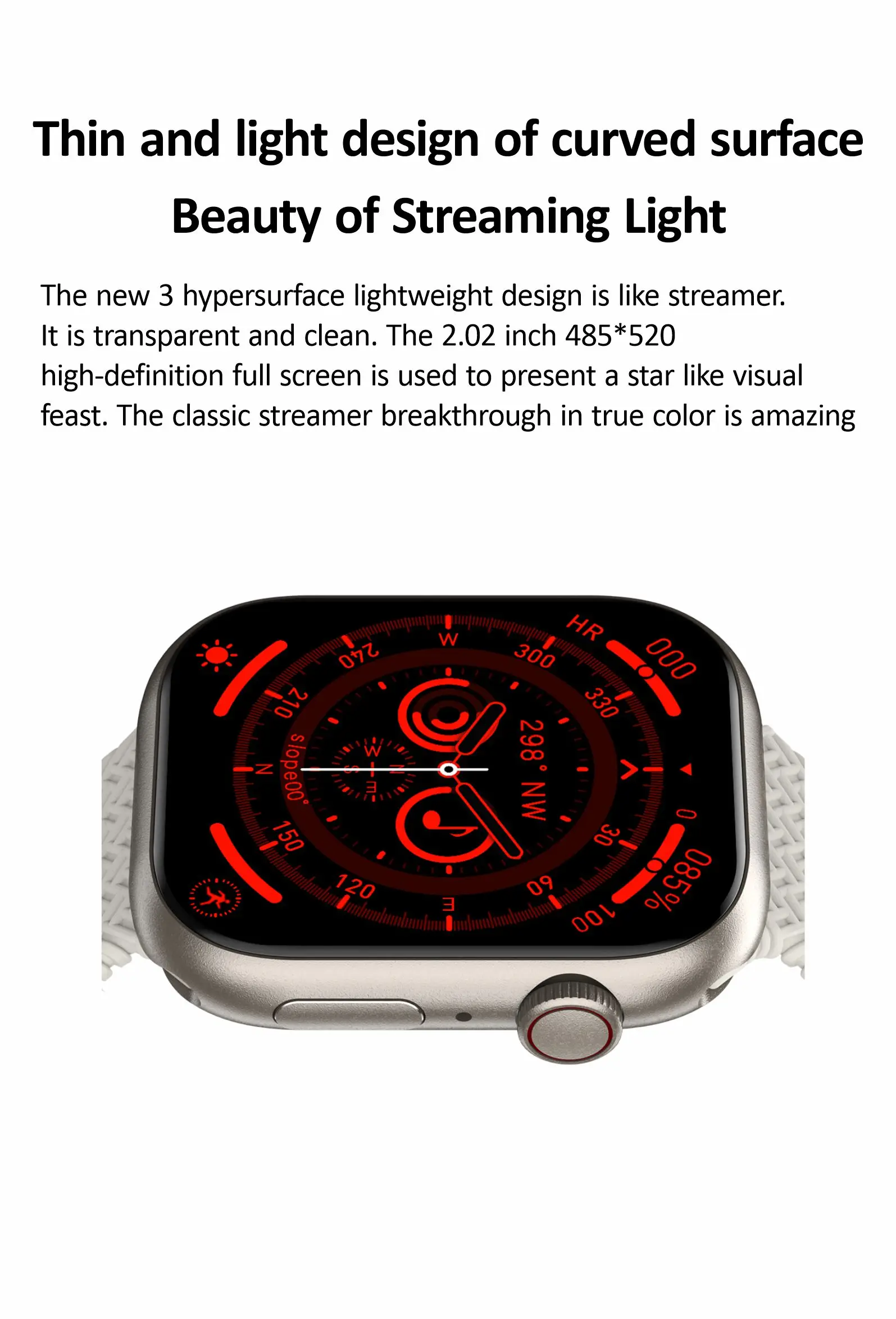 La pantalla AMOLED de 2,02 pulgadas con una alta resolución de 485*520 en el reloj inteligente HK9 Pro MAX ofrece una experiencia de visualización impresionante. Los colores vívidos y los detalles nítidos hacen que tus notificaciones, aplicaciones y esferas de reloj cobren vida en tu muñeca. Ya sea que estés revisando mensajes, monitoreando tu actividad física o simplemente disfrutando de una esfera de reloj elegante, la pantalla AMOLED eleva la estética y la usabilidad de este reloj.