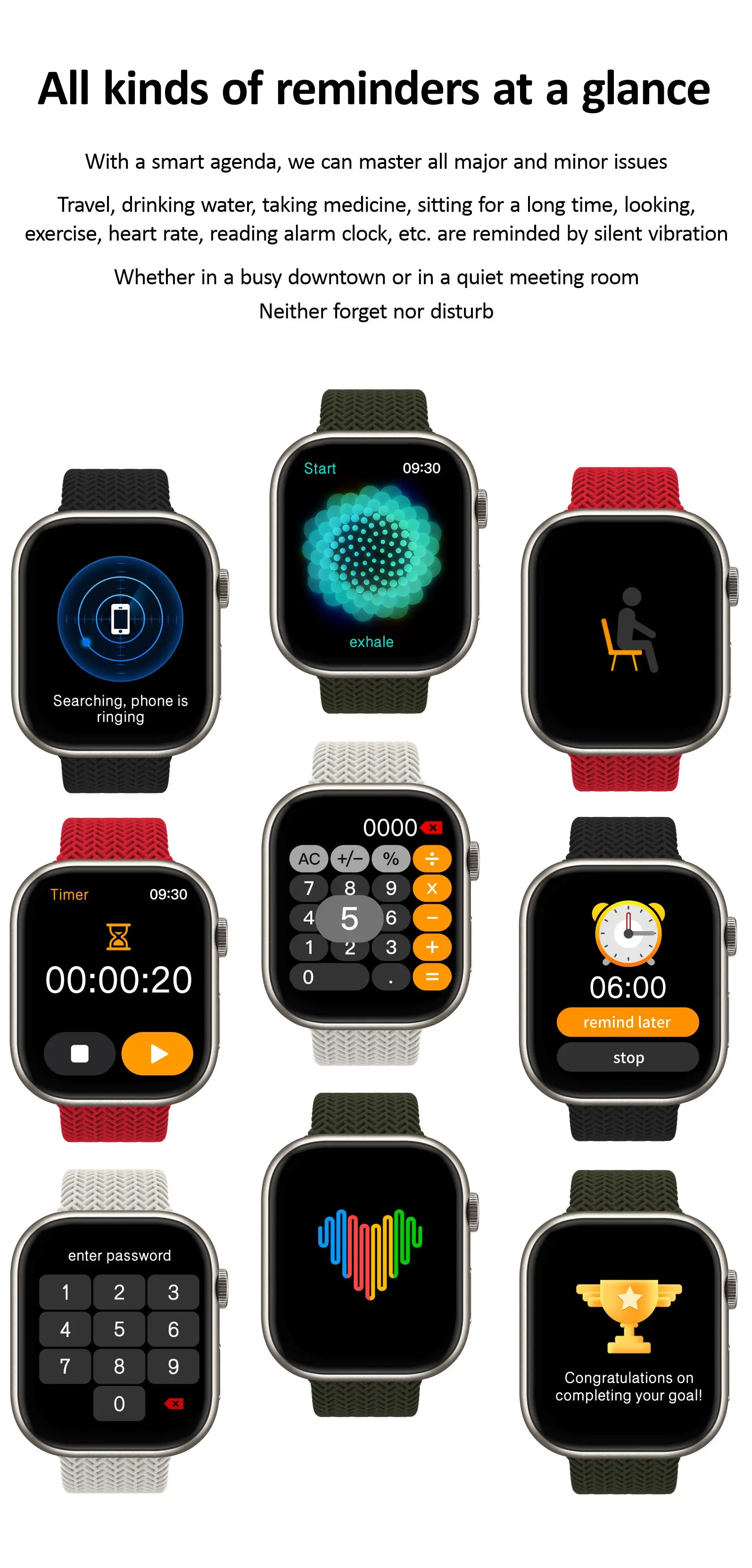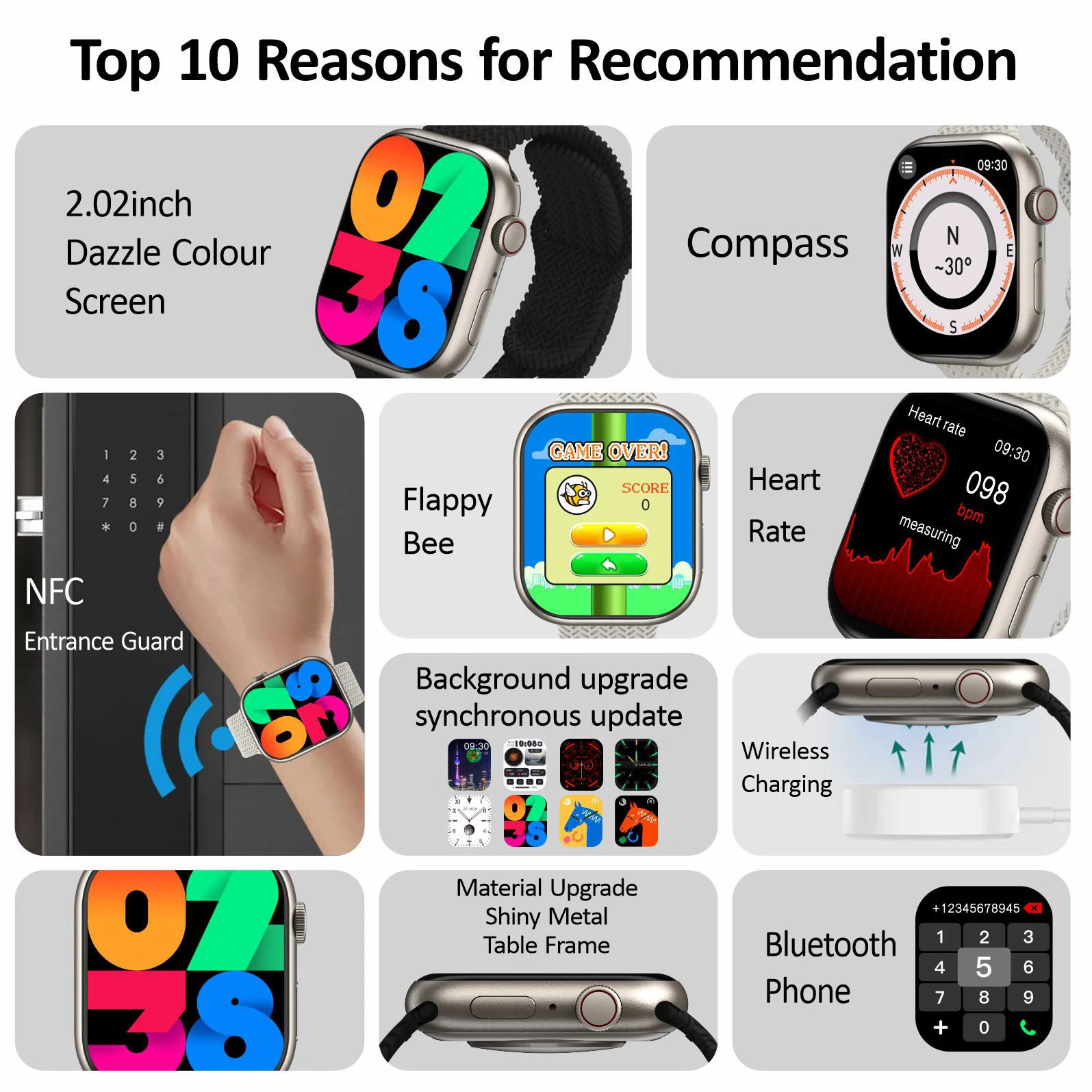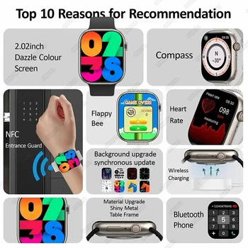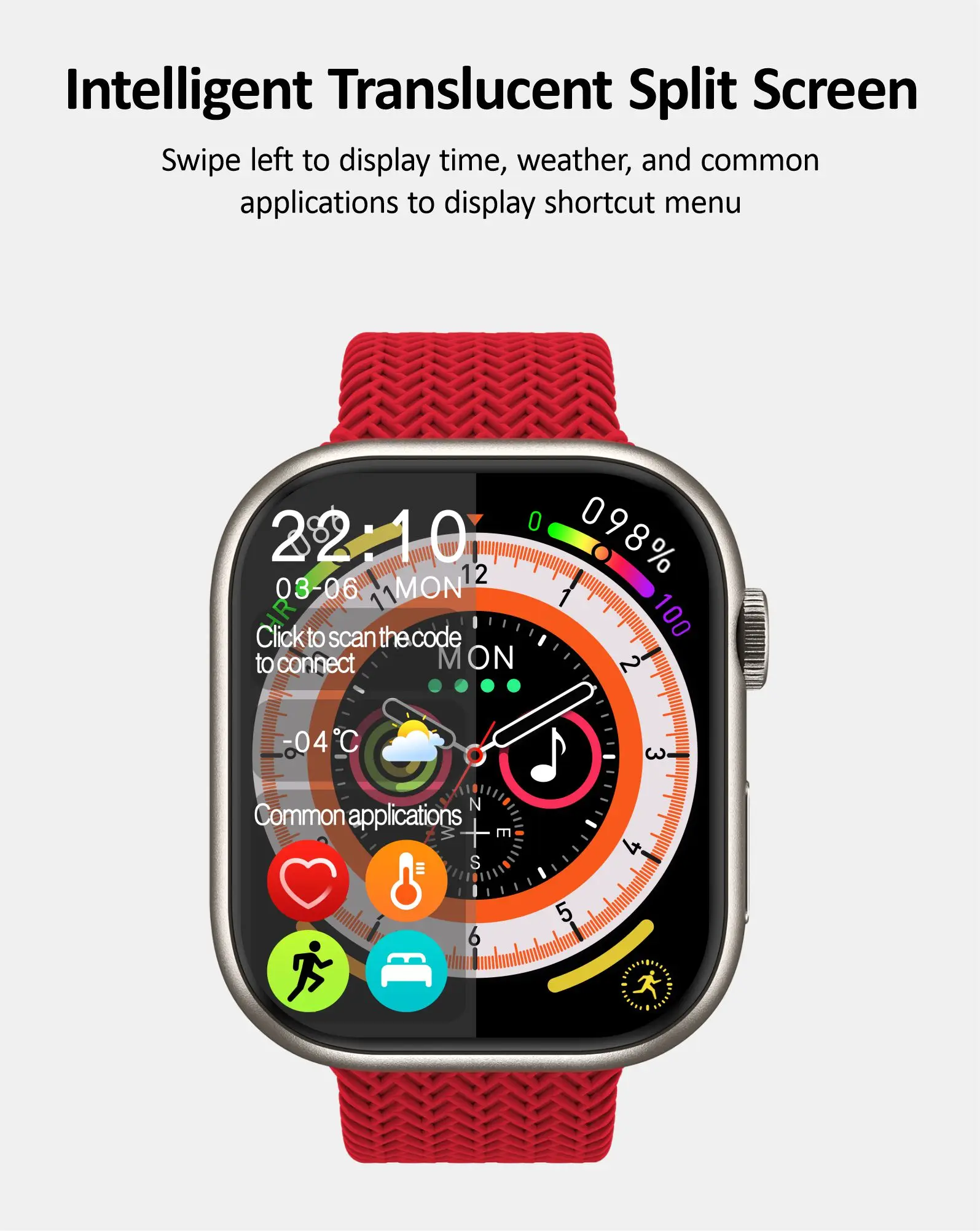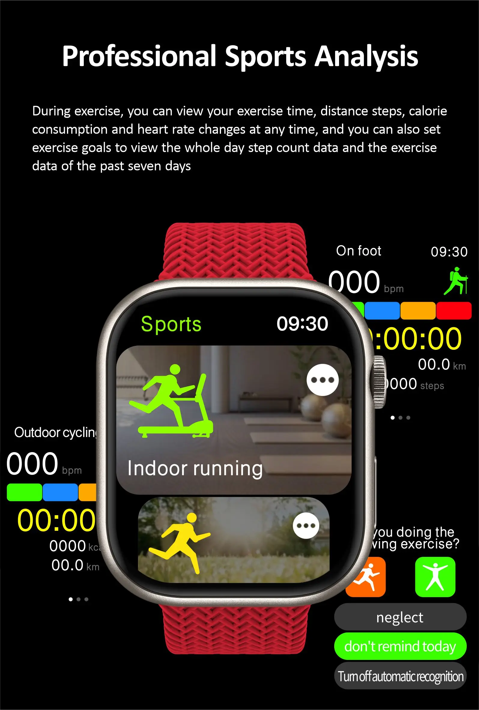 La pantalla AMOLED de 2,02 pulgadas con una alta resolución de 485*520 en el reloj inteligente HK9 Pro MAX ofrece una experiencia de visualización impresionante. Los colores vívidos y los detalles nítidos hacen que tus notificaciones, aplicaciones y esferas de reloj cobren vida en tu muñeca. Ya sea que estés revisando mensajes, monitoreando tu actividad física o simplemente disfrutando de una esfera de reloj elegante, la pantalla AMOLED eleva la estética y la usabilidad de este reloj.