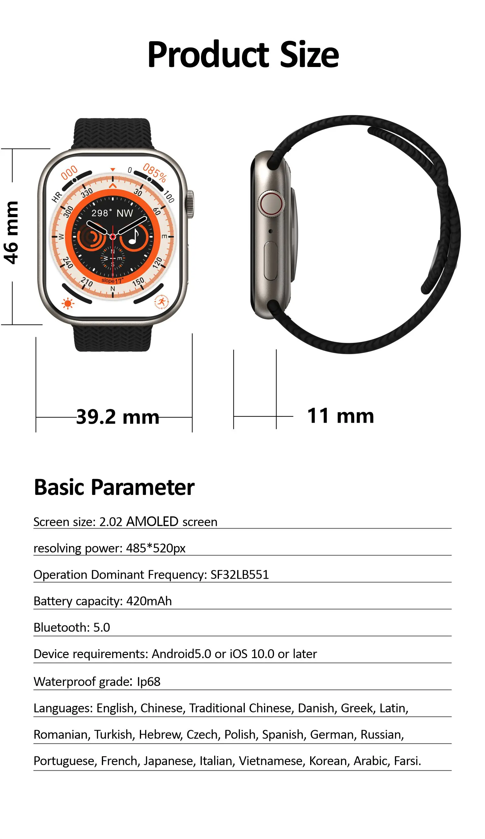 El diseño unisex del reloj inteligente HK9 Pro MAX lo hace adecuado para cualquier género y estilo. Además, la capacidad de cambiar entre múltiples idiomas asegura que puedas disfrutar de todas las funciones y personalizar la experiencia según tus preferencias. Ya sea que estés comunicándote en tu idioma nativo o experimentando con nuevos idiomas, este reloj se adapta a ti.