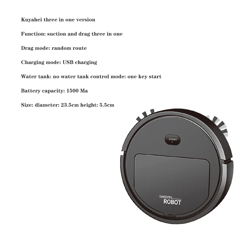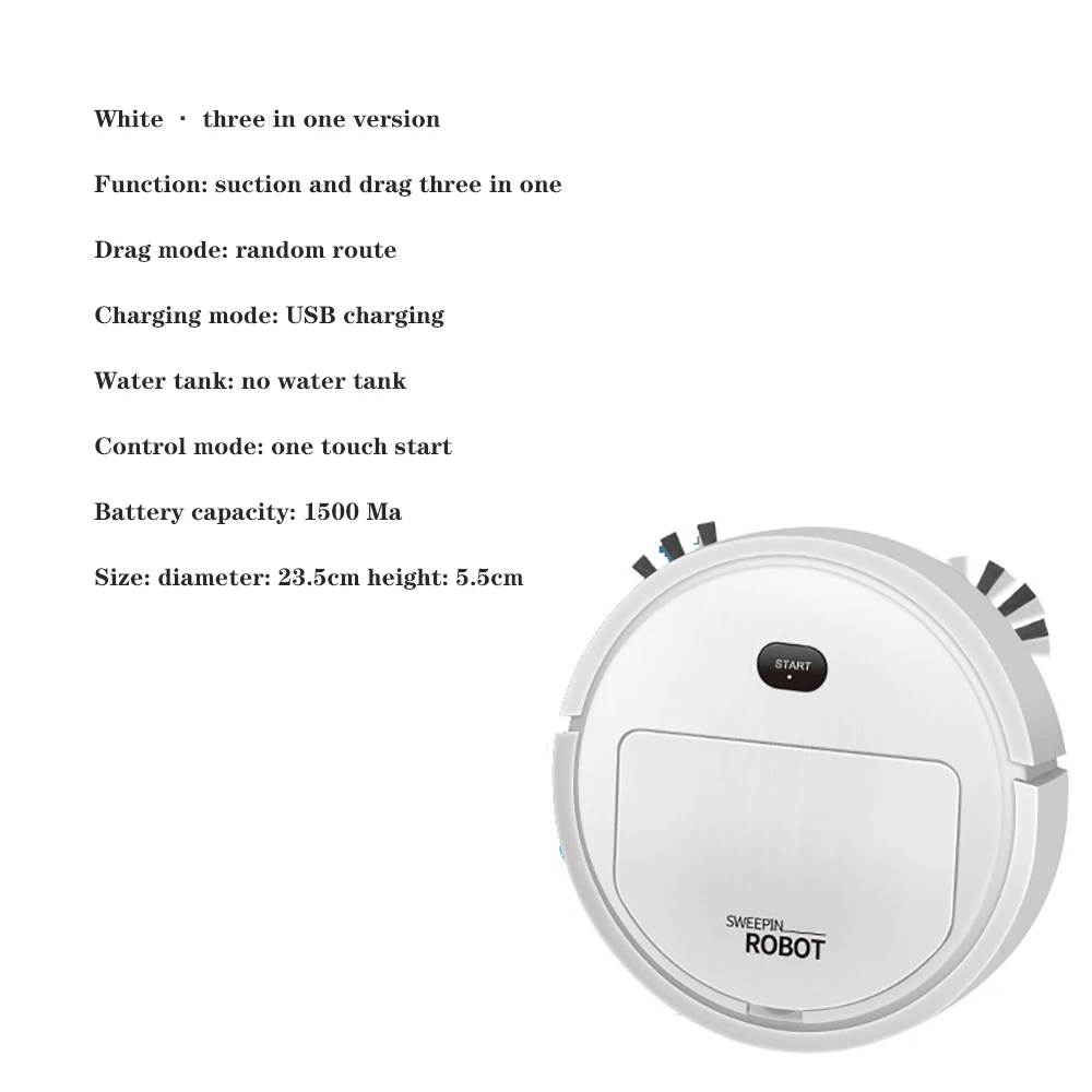 En el universo de la comodidad y el orden en el hogar, nuestro Robot Aspirador Inteligente 3 en 1 se erige como un pionero en la limpieza inteligente. Este dispositivo multifuncional, diseñado para brindar la máxima eficiencia, realiza tres tareas esenciales en un solo paquete compacto: barre, aspira y limpia. Con la capacidad de adaptarse a tus necesidades y programarse según tu conveniencia, este robot aspirador se convierte en un aliado confiable en tu búsqueda de un hogar impecable.