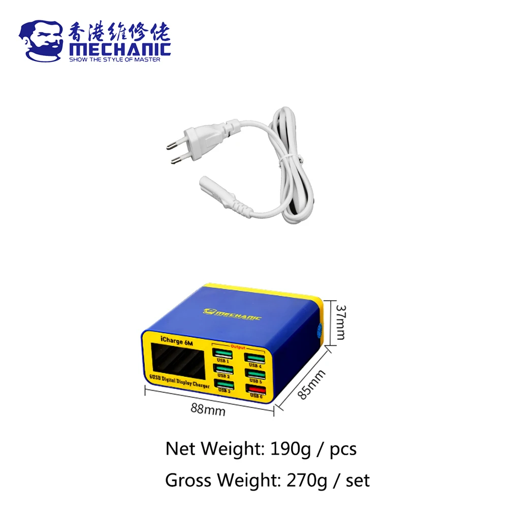Compatibilidad inteligente, adecuada para voltaje amplio global, con carga rápida de 5*2,4 A y 1 * interfaz de carga rápida QC3.0.