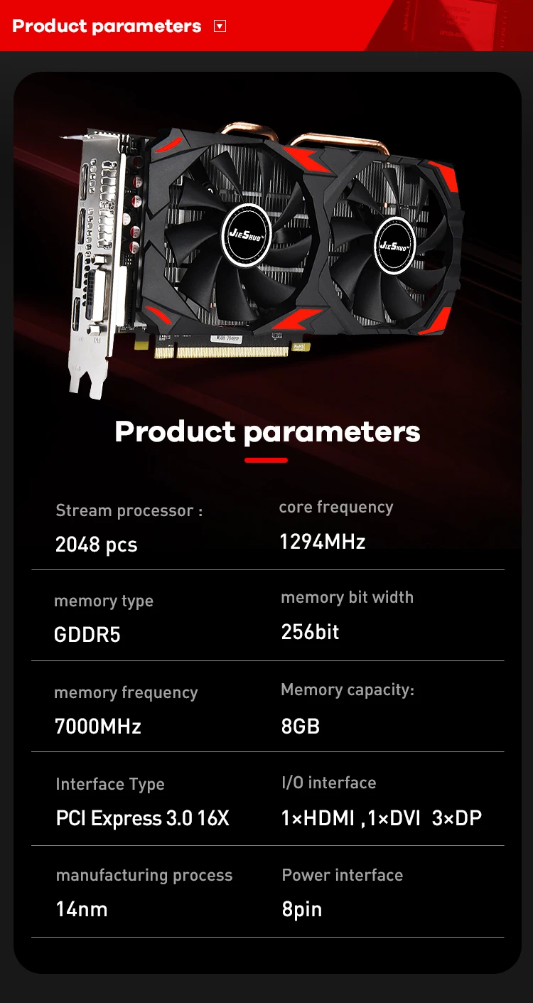 La Tarjeta Gráfica AMD RX 580 8G es una elección excelente para jugadores entusiastas y profesionales creativos. Con su rendimiento excepcional, memoria GDDR5 de 8GB y precio asequible como tarjeta reacondicionada, elevará tu experiencia de juego y diseño a nuevos niveles. Recuerda obtener el controlador especial para aprovechar todo su potencial a través de nuestro Servicio de Atención al Cliente en línea.