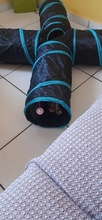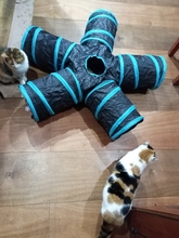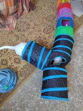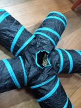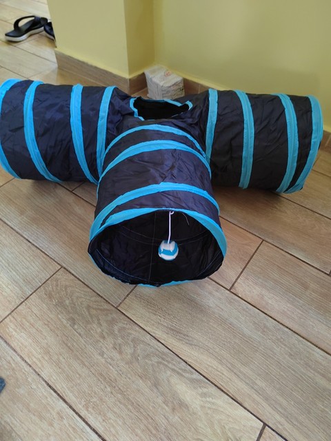 El túnel de juego plegable para gatos es un accesorio imprescindible para todos los dueños de gatos que desean proporcionarle a su mascota horas de diversión y ejercicio. Este túnel ofrece un espacio seguro y entretenido para que tu felino explore, juegue y se mantenga activo.