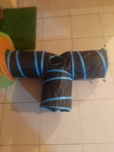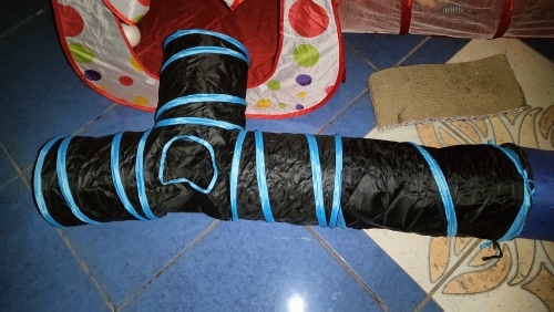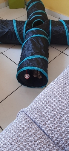 Con su diseño en forma de túnel, este accesorio anima a tu gato a explorar y perseguir a través de él. Esto estimula su curiosidad natural y promueve el ejercicio, lo que es beneficioso para su salud física y mental.